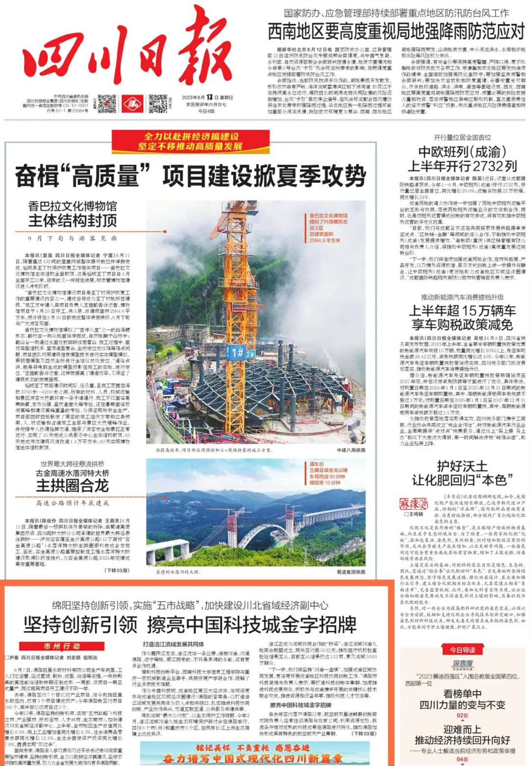 面向未来,绵阳深入学习贯彻习近平总书记来川视察重要指示精神,坚持创新引领,全力以赴拼经济搞建设,坚定不移推动高质量发展,努力为全省发展大局作出更多绵阳贡献。