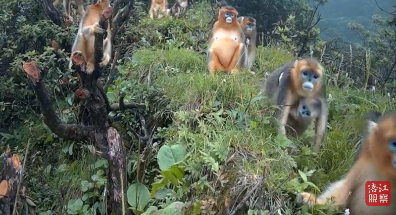 近日,大熊猫国家公园绵阳管理分局安州管理总站工作人员在整理安置在野外的红外相机时,发现一群川金丝猴的活动画面。