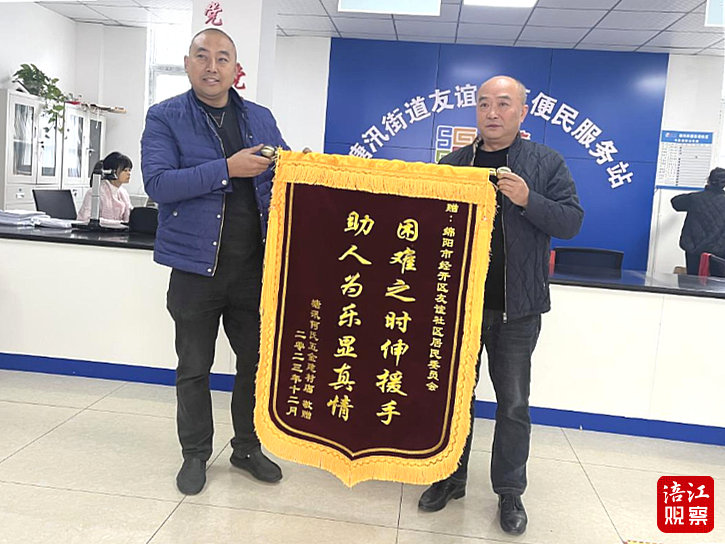 “感谢社区,真的太谢谢了!”12月14日,经开区塘汛街道友谊社区五组商户何氏五金店为社区送来了一面印有“困难之时伸援手 助人为乐显真情”的锦旗,对社区为民办实事、办好事表示感谢。