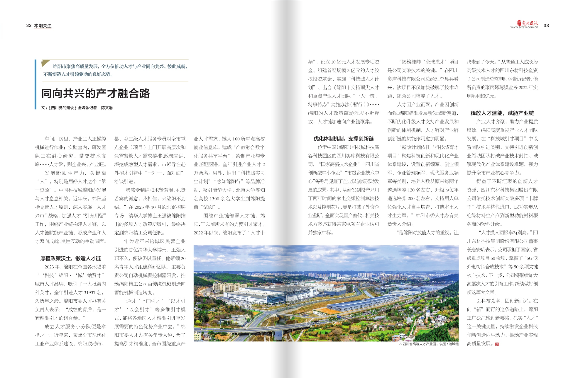 4月8日,最新一期的《四川党的建设》杂志,以《同向共兴的产才融合路》为题,特别关注绵阳全方位推动人才与产业同向共兴、彼此成就,不断塑造人才引领驱动的良好态势。全文如下: