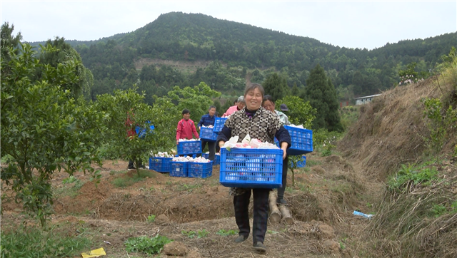 2020年以来,梓潼县自强镇党委探索实施将柑橘产业环线内所有党员全部纳入全新组织,设置产业党支部,以党建引领推动产业发展,目前全镇发展各类柑橘6000余亩。在柑橘产业党支部的带动下,贾碧芳加入了柑橘合作社,今年她家的3亩多“大雅一号”又取得了大丰收,左邻右舍都来帮助采摘、装车,贾碧芳心里喜滋滋的。“在村党委的支持下,我种了三亩大雅一号柑橘,通过合作社引荐,现在销路好了,要卖两万块钱,我心里非常高兴。”