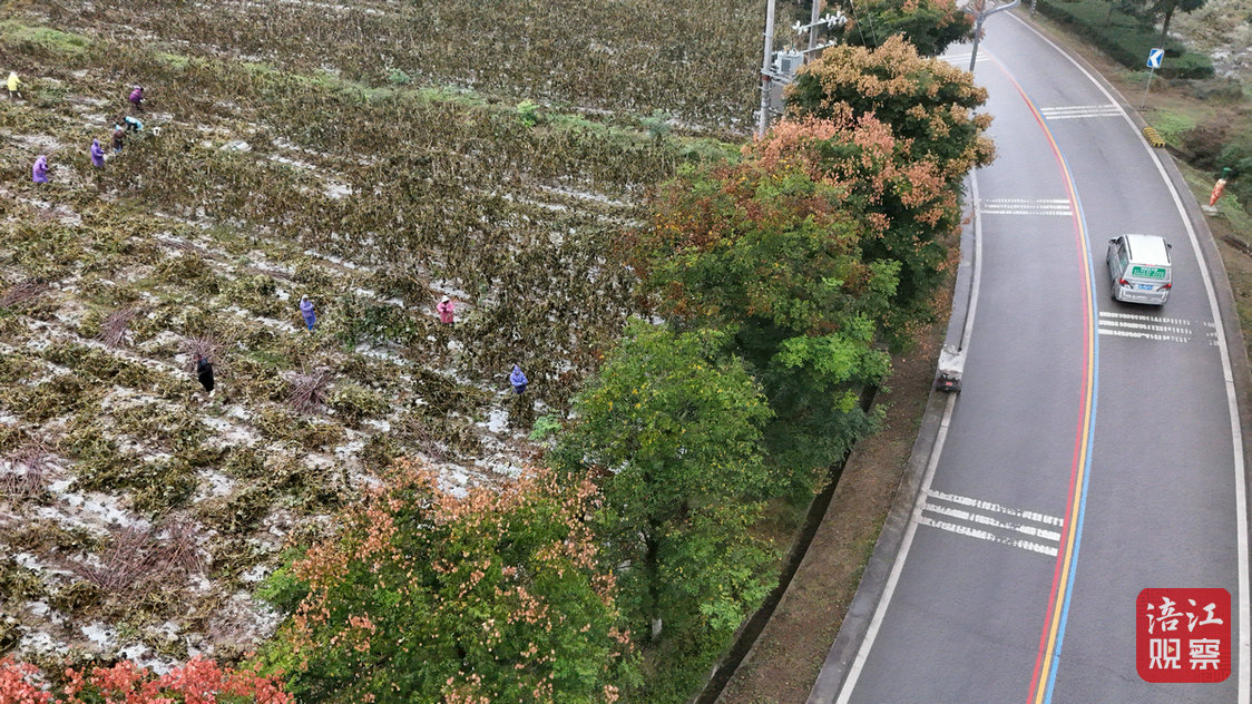 偶尔可见身着雨衣的农户在清理枯萎的豆角藤