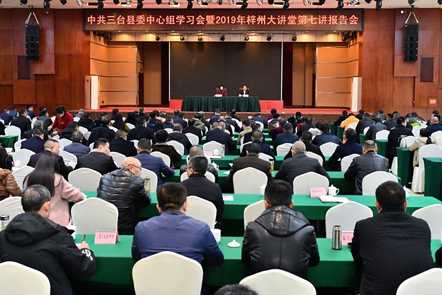 近日,中共三台县委召开中心组学习会暨2019年梓州大讲堂第七讲报告会,市政协党组书记、主席张锦明到三台作党的十九届四中全会精神专题报告。三台县委书记马辉主持。