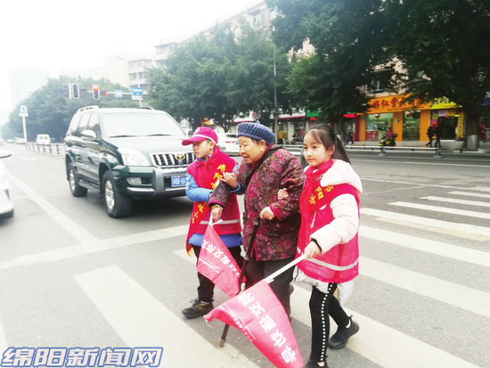 “嘘、嘘、嘘……小朋友,看着两边的来车,注意安全。”冬日的清晨,在南河路实验小学门口,身穿红色马甲的青年志愿者李新站在薄雾中,口中吹着哨子,伸出手里的小黄旗拦住车流,让上学的孩子和送行的家长安全过马路。这是涪城区开展交通文明志愿服务活动的一个缩影。