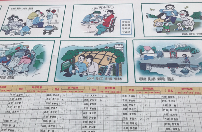 每季度末月下旬,由村民小组组织群众根据被测评户日常表现和主观感受进行“好、中、差”评价,再根据群众评价结果等次,分别按照60-70分、40-59分、0-39分的分值进行折合计分,让每一名群众都参与到村规民约的执行中,既监督别人,也匡正自己。同时,评审小组评分,针对群众评价中可能存在情况了解不全、不愿得罪人、个别户评价结果失真等问题,邀请各村德高望重、成功人士、群众代表、“两委”干部等成立5—7人的评审小组,根据村规民约内容量化评分,按照20分的分值进行折合计分;村委会评议,由村委会成员根据被测评户现实表现和掌握的特殊情况,按照10分的分值进行折合计分,确保得分情况与实际表现一致。充分发挥党支部把关定向和领导核心作用,召开支委会,针对评议程序、评议成员、评议方式等重点环节,审核群众评价、评审小组评分、村委会的评议结果,并将经村党支部审核后的结果予以公布。次年1月底前,再召开村民代表会议,对上年度量化考核结果进行“终审”审定,确保评议结果得到群众广泛认可。