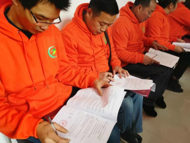 启智新公益工作人员正在阅读相关文件