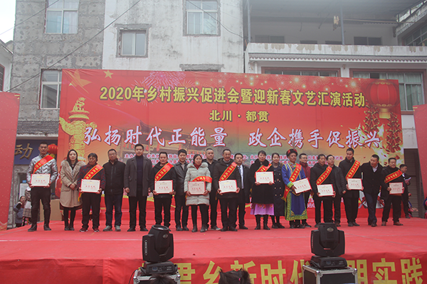 1月16日,北川都贯乡隆重举办了以 “弘扬时代正能量,政企携手促振兴”为主题的乡村振兴促进会暨迎新春文艺汇演系列活动。邀请绵阳市工商联、深圳绵阳商会、北川总商会等32家商会和企业、都贯籍优秀人才25名、支持都贯乡发展或正在合作的6家企业共计60余名企业代表、优秀人才等与都贯人民一起共同参加活动。