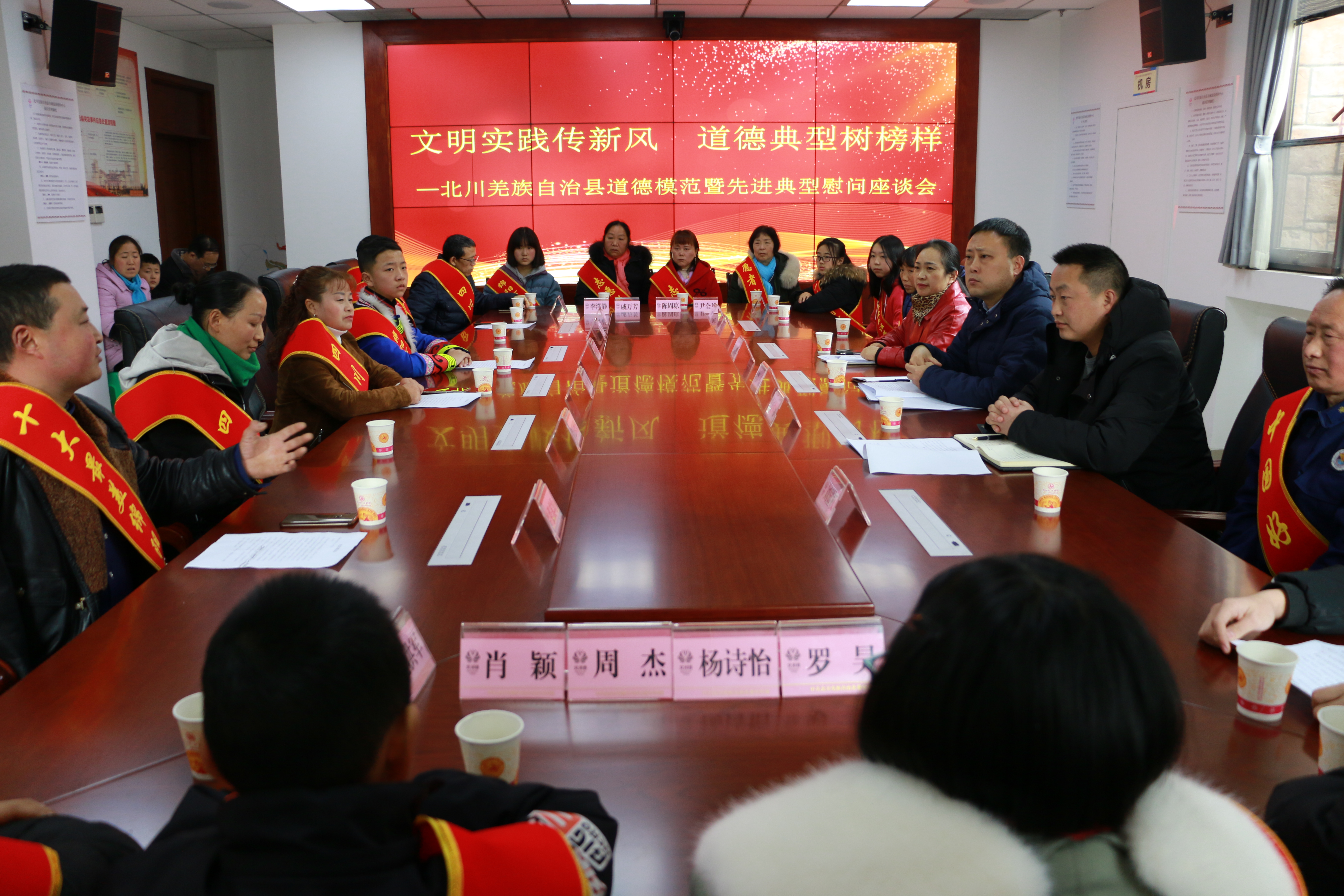 为大力弘扬道德典型先进事迹,引导人们从德向善、见贤思齐,不断提升道德荣誉感,推动公民思想道德建设。1月20日下午,北川羌族自治县召开“文明实践传新风 道德典型树榜样—道德模范暨先进典型慰问座谈会”。会议邀请近年来获评的“中国好人”“全国美德孝心少年”“四川好人”“四川省新时代·好少年”“感动绵阳人物”“最美绵阳人”“绵阳市美德少年”“绵阳市新时代·好少年”等道德典型和“羌老头爱心工坊”优秀志愿者代表参加。县委常委、宣传部长李东出席座谈会并讲话。