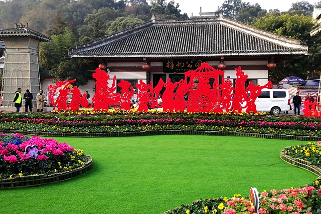过新年,不仅要干干净净,更要欢乐喜庆。近日,该县住建局在梓州干道、东河路、北泉路等街道悬挂红灯笼、设置欢度春节的小型造型灯箱灯饰,在城区的主城干道、公园、广场都装扮上了花卉。1月19日上午,在迎宾广场,占地550平方米的“福鼠呈祥”景观花卉造景搭建完毕,吸引了不少过往市民驻足观看和拍照留影。郁金香、彩色马蹄莲、各色瓜叶菊、大花樱草、报春、比利时杜鹃、蝴蝶等近10个品种3万余盆花卉,运用花卉组团、镂空剪纸、假山塑型等表现形式,在保留传统特色的基础上,增强游人移步换景的观赏效果。人们可进入其间,拍照互动,近距离体验匠心独运的新年花坛景观。