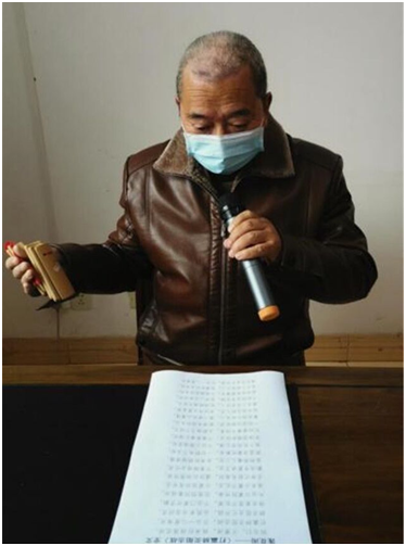 “同志们,不要闹,我来打段莲花闹,打赢肺炎阻击战,万众一心度难关…….”这是梓潼县卧龙镇文化站站长席仕胜自发创作的防疫宣传曲——《莲花闹》。他同退休干部闫克豹一道,拿起快板,用通俗易懂,朗朗上口的语言,将防疫知识录成音频,呼吁大家积极配合政府防疫、抗疫工作。