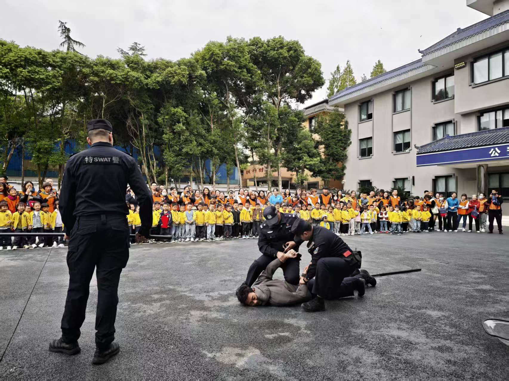最令孩子们兴奋的,是一场精彩的反恐防暴实战演练。特警队员们动作迅猛、配合默契,快速制服“暴徒”的场景,让现场的孩子们既紧张又震撼?!霸淳焓迨逭饷蠢骱Γ鼙;の颐堑陌踩?!”看完演练,孩子们纷纷发出感叹,安全防范的种子在心底悄然萌芽。