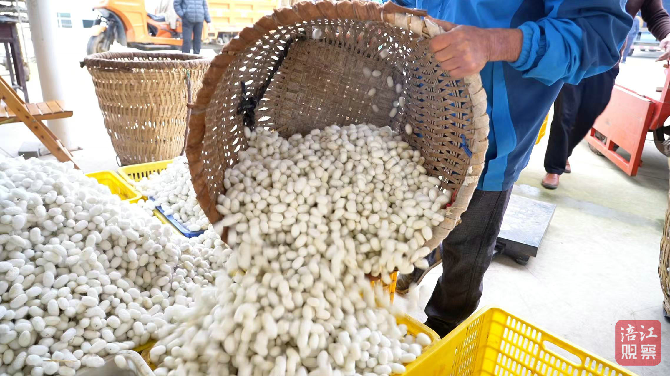 广西蚕茧收购商万俞林抓起一把蚕茧放在耳边摇了摇,满意地说:“这是我们第一次过来,预估收购5到8吨,这儿的茧子质量非常好,明年我们还会继续过来。”