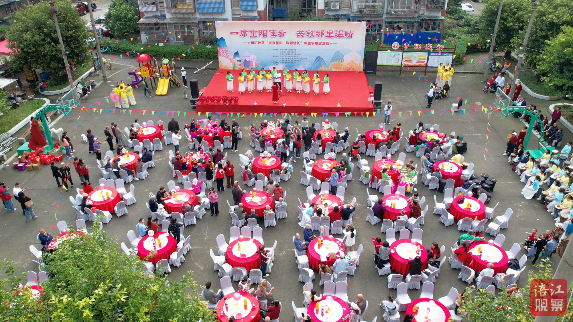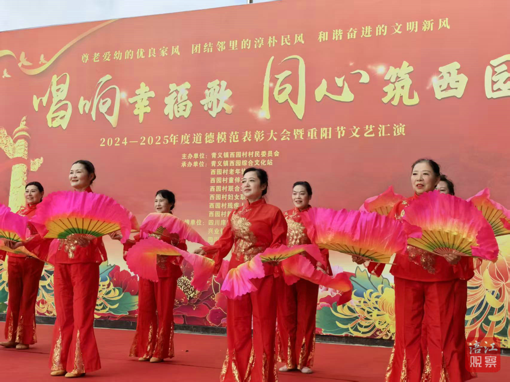 10月27日,涪城区青义镇西园村彩旗飘扬、笑语连连,一场集先进表彰、坝坝宴、文艺表演于一体的重阳敬老活动热闹上演,为该村老人送上满满的温暖与祝福。