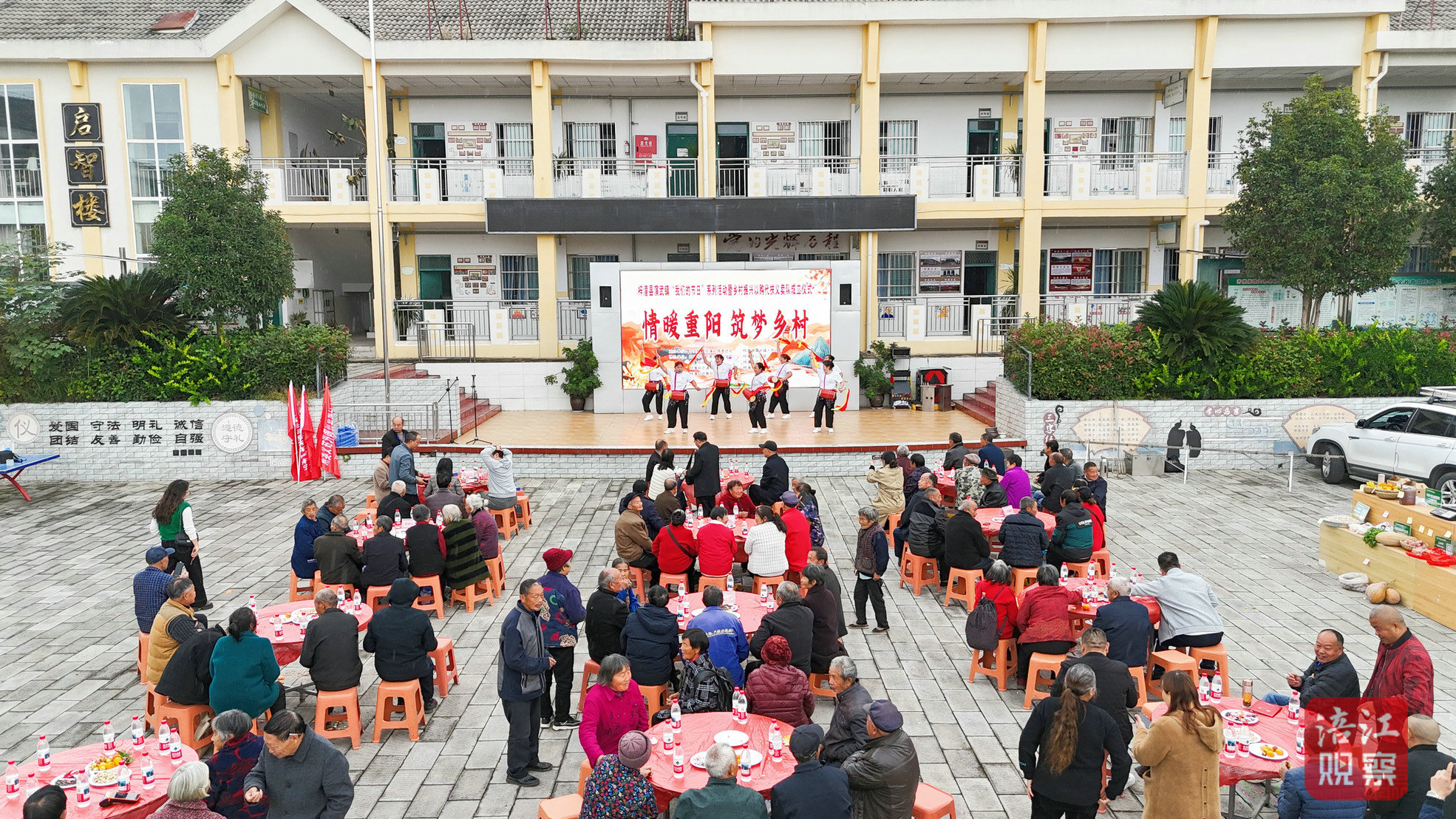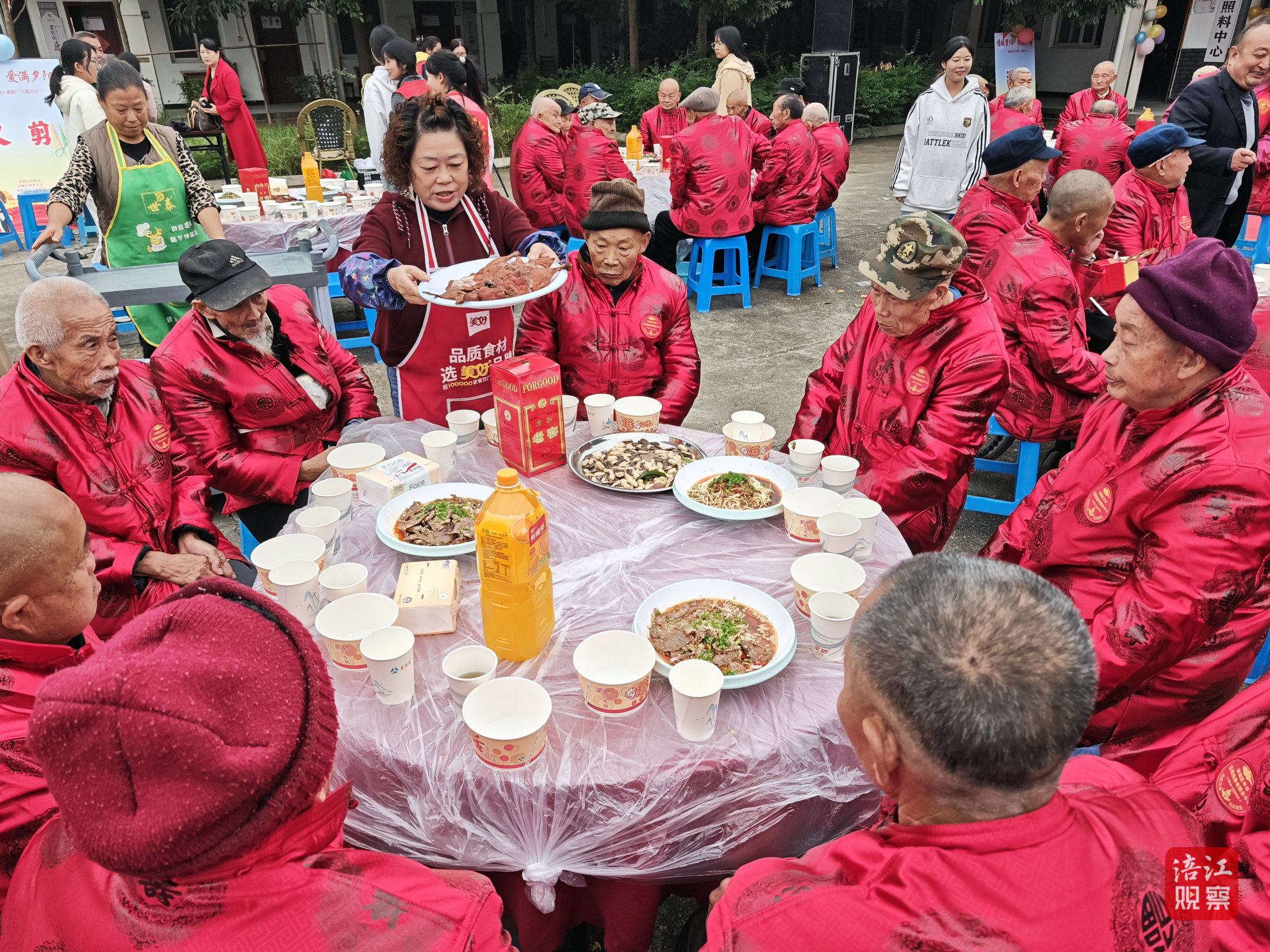 全镇100余名60岁以上老人欢聚一堂,赏文艺演出、动手包饺子、吃坝坝宴,在欢声笑语中共度佳节。