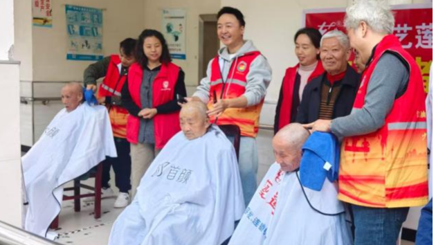 治城社区的爱心便民服务区前人头攒动,社区联动辖区志愿者开展免费义剪服务。专业理发师根据老人们的需求精心设计发型,修剪、梳理动作娴熟细致;志愿者们则全程陪同,协助行动不便的老人就座、整理衣物,还一边与老人们拉家常、话重阳,现场欢声笑语不断。理完发的老人们看着镜中清爽的模样,脸上都洋溢着满意的笑容,连连夸赞服务贴心又周到。