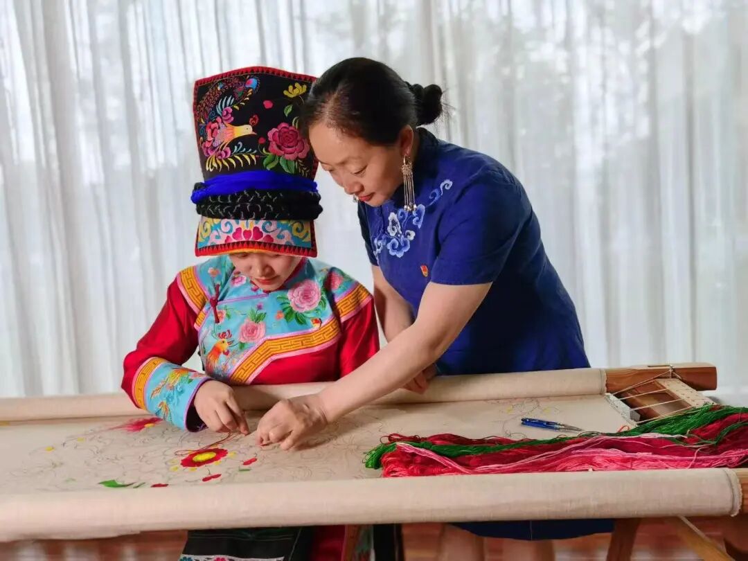 在陈云珍的工位旁,绣娘宋琴正俯身于绣架前,专注地绣制一幅双面绣屏风。宋琴曾因地震失去双腿,5年前来到羌绣工坊后,在陈云珍手把手地教导下,如今已成长为工坊里独当一面的业务能手。“这里早就是我的第二个家了。”宋琴笑着说,“靠着这门手艺,大多数时候每月能稳定增收2000多元。”
